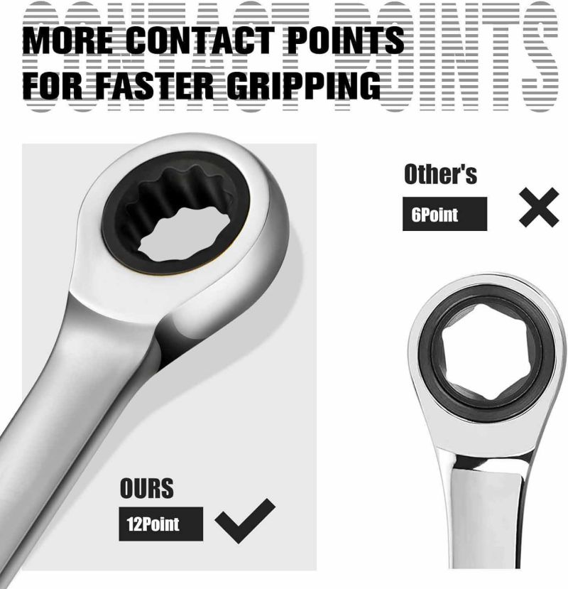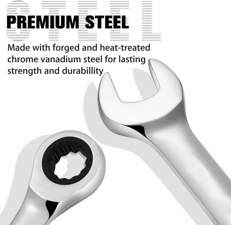 Durata più lunga, non facile da indossare. Il set di chiavi a cricchetto per meccanica di utensili manuali è realizzato in buon acciaio legato. Speciale trattamento superficiale argento opaco. È antiruggine e anticorrosione.