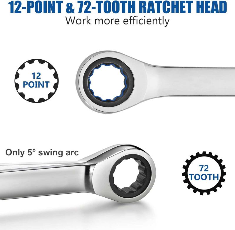 Il set di chiavi a cricchetto meccaniche da 72 denti richiede solo un arco di oscillazione più piccolo di 5 gradi per un migliore accesso in spazi ristretti. Può accelerare il tuo lavoro senza sollevarlo ripetutamente.